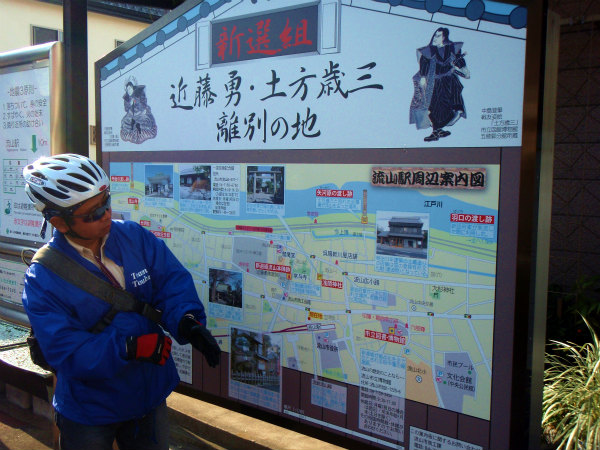 お腹いっぱいになった後は、万華鏡の展示を見学し、閻魔堂に自転車止めて、近藤勇陣屋跡を見学しました。若いお嬢さん達がはっぴ来て案内してくれ、新選組自体をよく知らない僕でも少しわかるぐらいの説明で、流山で何があったのか?が分かったような気がします。