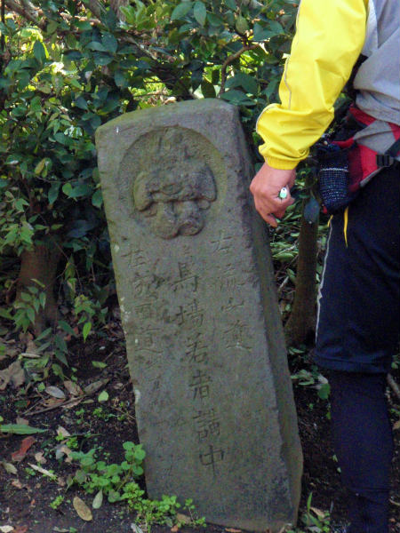 sPB230893その後、利根運河の南側に渡って(あ!ここで10さん夫妻に遭遇!あの橋の上に何台自転車がいたのでしょう?)自転車競技場があったかもしれない「馬場」へ。利根運河に自転車放り出して、みんなで歩きます。案内された場所には野球場、プール、BMX練習場みたいなものがありました。画像は「馬場」にあった道標で、流山道と成田道を案内しています。ここの交通量が大変なことになってましたね(笑)