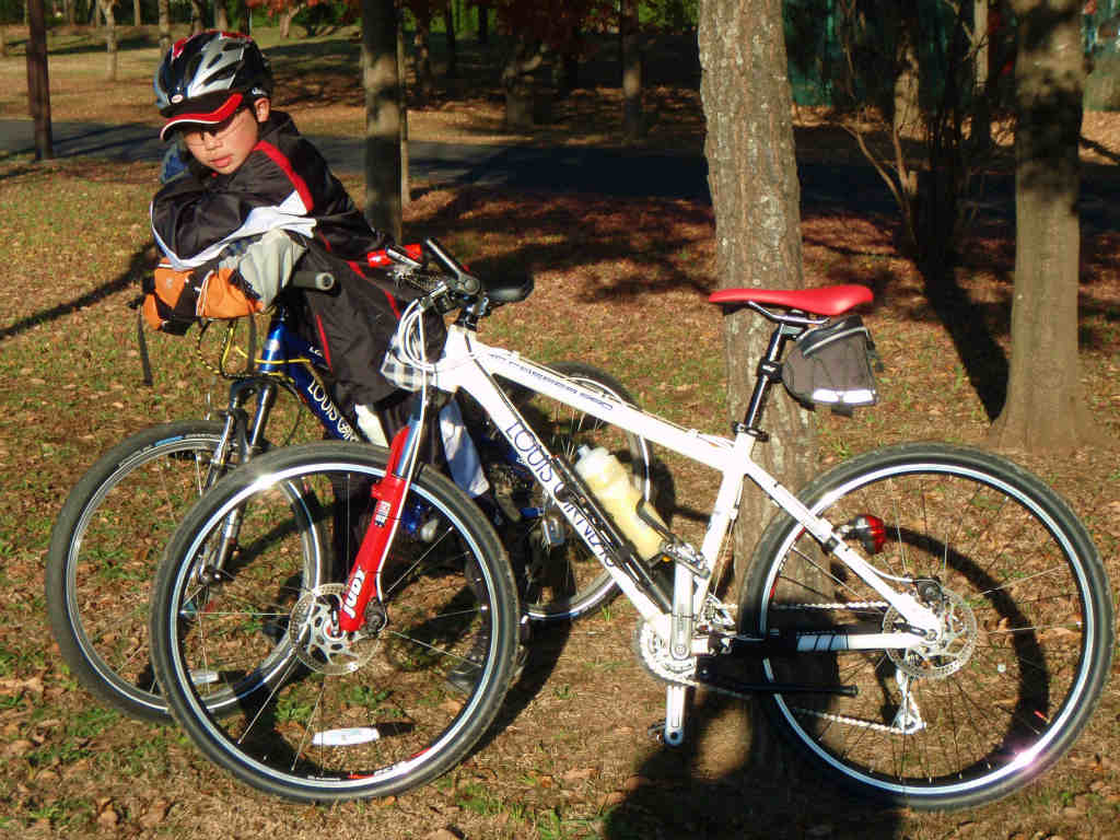 双子公園から見える飯野までの坂をひたすら登ります。息子は重いギヤでガシガシ立ちこぎ数分。緩やかになったところで「後は軽いギヤでマイペース!」の声に反応してくるくる登坂モードで登りきりました。(押しが入るかなぁ?なんて思ってましたが、頑張ったね)ここでしゃあさんの1号機が悲鳴をあげたので2号機が登場しました。すげーーー2号機があったんだ!頂上から田舎道に入って坂を下るとふるさと公園に到着!