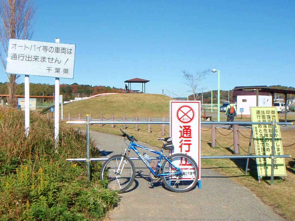 その後、長ーい下りを楽しんでから双子公園で休憩。なんと公園内も通行止めでしたね〜(この後も何枚この看板を見たでしょうか?)