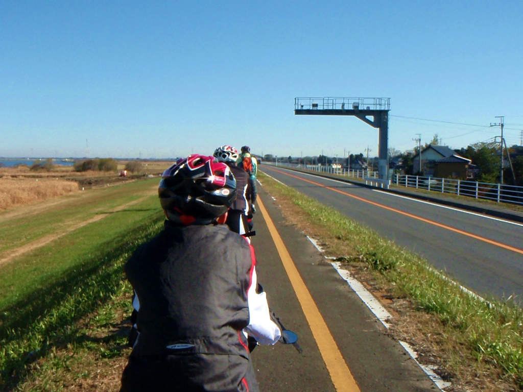 とりあえず手術が終わったので、みなさん自己紹介して出発!天気は快晴で暖かく絶好のポタ日和でしたね!うさぎさんとかめさんに別れて出発します。手賀沼CRから手賀川沿いを抜けて利根川CRにアプローチしますが、追い風で快調に進みます。集合場所に向かうアプローチではうさぎさんは遠回り、かめさんは近道して、だいたい同じ時間に休憩ポイントに集合するなんて、さすがTEAMSTROLLERさん!