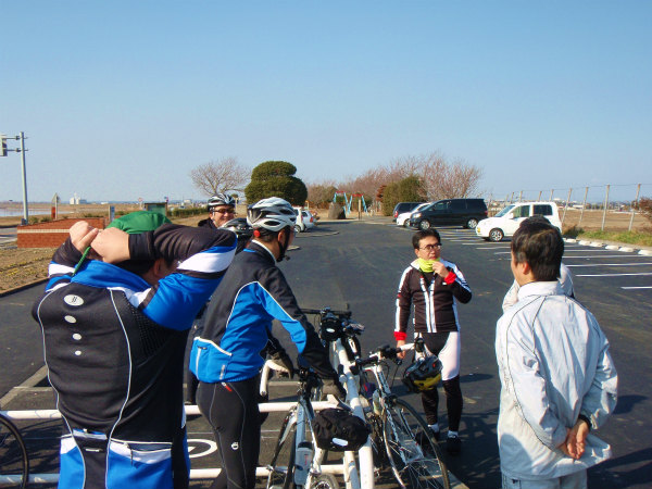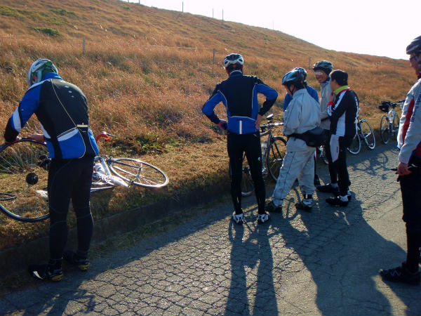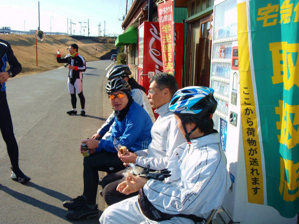 みなさんの後ろにつかせてもらって、なんとか順調に走りますが、途中でよどさんパンク!!喋りながら手際よくチューブ交換して、出発!利根川の右岸に渡って一般道を走ります。この一般道で頑張って走ったら足がパンパンに、、、