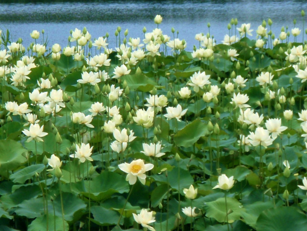 たどり着くと、蓮が綺麗に咲いていました。ここの蓮は白い花で、手賀沼のピンクとは違った感じです。好み的には白いほうが好きですね。水芭蕉みたいな感じですごく瑞々しい花(最初の画像)でした。来週はハス祭りって書いてあったけど何があるのか?情報はありません、、(残念)