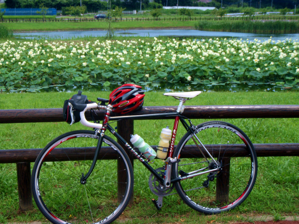 狂四郎さんを待つ間にフリーさんのケルビムちっちゃいのに乗せてもらいました。BMXみたいなポジションで面白い。ちょっと慣れが必要かもしれませんが、前傾がきつく感じてスピードに乗ると早そうです。というかケルビムっていろんな自転車作ってますね。かなり、まったりして、ミニストップの店長にはご心配おかけしたのではないでしょうか?(笑)ここは目的地?