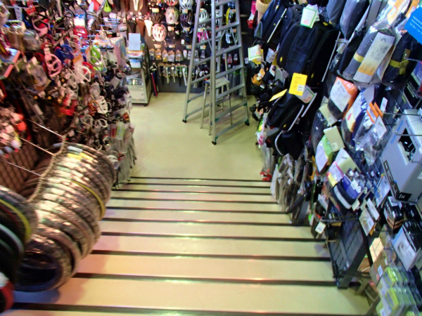 パーツは階段あたりに陳列されていてかなりあります。結局、殆ど階段に居ましたね(笑)お気に入りのVETTAのサイコンやなかなか見つからない25Cや16インチのタイヤを扱っているところが助かります。僕の持っている車種的には、これまでで一番使えるショップになりそうです!