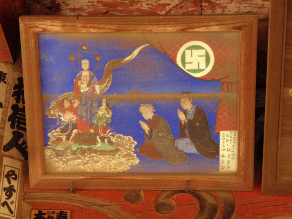 一番左の絵は鮮やかで、卍が印象的(笑)。真ん中はよく見る構図ですね。