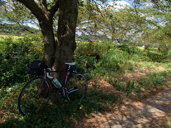 いつものようにフィッシングセンターから手賀川CRに入りますが、めちゃくちゃ暑いです。今日はスポーツドリンクが切れていたので、梅酢(梅をリンゴ酢に付けたもの)を10倍くらいに薄めたものをボトルに入れて走りましたが、酸っぱくて目が覚めます(笑)!僕は酢があまり得意ではないですが、リンゴ酢は大丈夫です。梅酢の力をかりて、順調にうろうろし、今井の桜まで来て休憩しました。