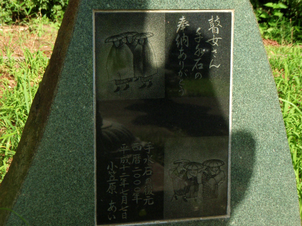 最後はこの石碑です。「瞽女さん手水石の奉納ありがとう」って何?と思ったら横には説明もありました。瞽女さんって三味線持って歌を歌いながら旅をする盲目の女性との事です。別所の人が宿を提供していたそうです。