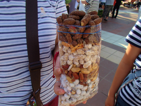 「飯田梨園」の場所は確認できましたが、豊水がゲットできずに残念でしたが、まつりつくばでは目的のものをゲットしてきましたよ。これです。300円で詰め放題!カシューナッツだけで一袋にしましたが、ここのナッツは本当に美味しいんです。今年は店の場所が変わっていたので少し迷いましたが、、同じように探し回っているおばさんがいました(笑)