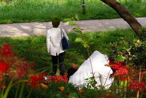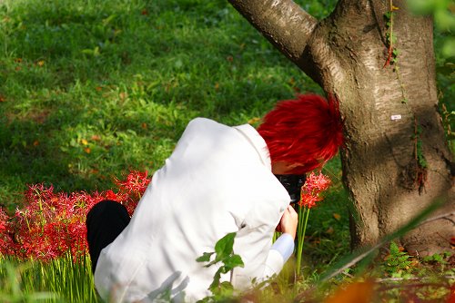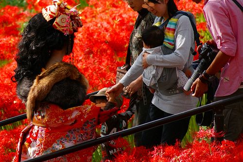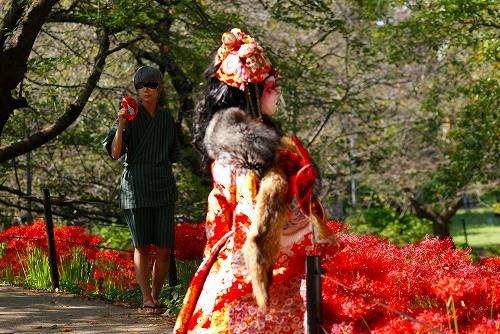 カメラを向けるのが、悪いような気がしたのであまり撮らなかったのですが、この方が際立って綺麗だったので撮ってしまいました。着ているものも、お化粧も凄く目立ってたのですが、ケバケバ感がなくって、違和感がなかったです。小さな子供が自然に触りに行ったりするくらいだったので、彼岸花に溶け込んで自然だったのでしょうね。