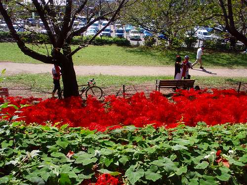 彼岸花のすごさにも驚きましたが、それより驚いたのは、いろんな色の髪や衣装を着た人があっちこっちに居て、お互いにデジイチを使って撮影してます。いわゆるコスプレで、特に興味もなかったのですが、場所によっては見物人よりもコスプレの方のほうが多い場所もあったりしました。でも、威圧感はなくて、撮影を待ってあげたら「ありがとうございます」とお礼を言ったり、お年寄りや子供が質問したら丁寧に答えてたので、なんだか、温かい気持ちになりましたよ。