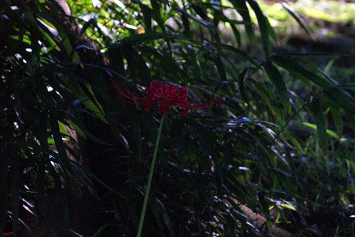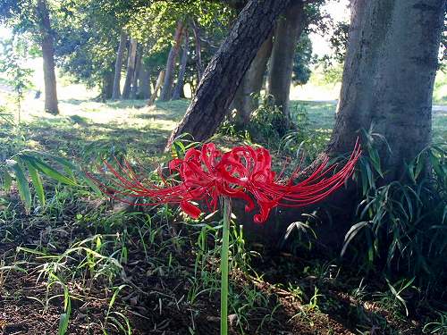 せっかくの初彼岸花だったので、コンデジで撮り直しましたよ(笑)公園内に2本だけ咲いてました。草刈りしているおじさんもこれだけは残してくれたみたいですね(ありがとうー)。
