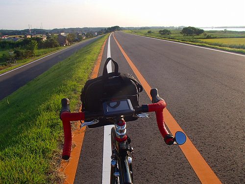 今日はここから帰ろう(笑)と、左右に注意しながら356号線バイパスを渡ります。もう秋ですね〜、ススキが綺麗です。この道は直ぐに356号を渡って、布佐の町に入るので、いつもの手賀川沿いをのんびりと走ります。