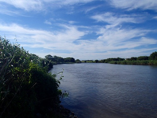 小貝川にはこんな舟がおいてあったりして、のどかです。船着場から眺めた空は秋の空ですね。(これも、コンデジですが、、)