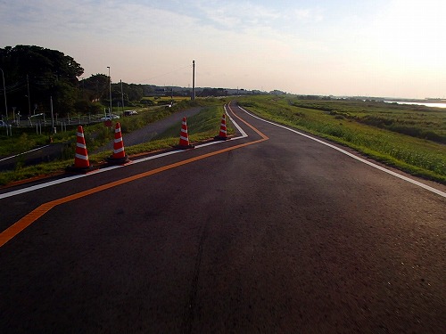 快調に走っていると、前から犬の散歩をされている方が居たので右によると、その向こうは3分の1以下の道幅に、、、(笑)よそ見をしていたら、あやうく道路側に転落しそうです。夕方走るときはみなさん気をつけましょうね。