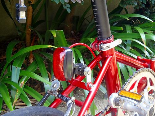 シートクランプに共締めして、テールランプを付けていたのですが、シートクランプを緩める度にテールランプががくっと下がります。これ結構面倒なので、泥除け用のダボを使って少し後ろに移動しました。