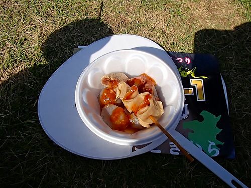 僕が投票したのは最初の画像の「居酒屋たぬき」さんの「海鮮塩焼きそば」です。写真の「スジ玉こんにゃく」も美味しかったし、「生チョコタルト」も美味しかったのですが、2つ買って食べた「海鮮塩焼きそば」に投票!グランプリは何だったのかな?