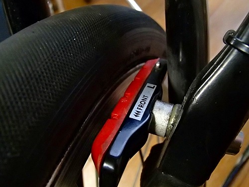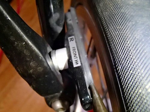 まぁ、穴の形が違うだけなら付かないことはなさそうだし、という事で交換しちゃいました。結局、何の問題もなく取り付けができましたし、古いシューは右用と左用でリムに当たる部分の形が違うのですが、新しいシューは同じなので、機能的にも問題はなさそうです。