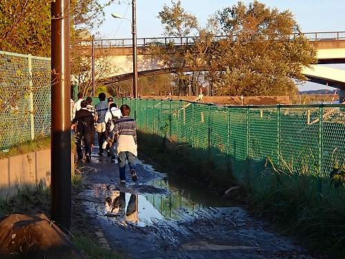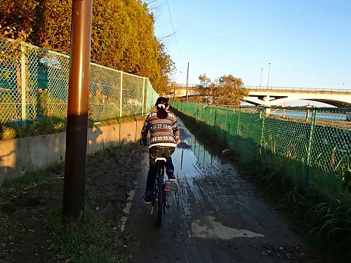 結局、手賀沼公園のベンチに座ったり、遊歩道を移動したりしながら、娘はBORGで遊び、僕はその姿をデジカメで撮ったり、沈む前の太陽の暖かさにほっこりしながら、秋の夕暮を楽しみました。手賀大橋の下あたりの遊歩道は水没したようで、こんな状態です。自転車の場合は大丈夫ですが、その前に歩いていた方たちはちょっとかわいそうでしたよ。