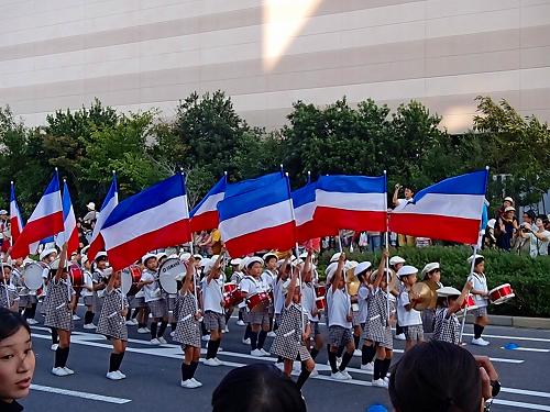 市民の皆さんもよさこいとか吹奏楽とかあちこちでステージがあって、お客さんもお店もステージも程よく分散していて、退屈しないお祭りです。帰り際にはこんなカワイイ子達が何故かフランス国旗です(笑)あまりの可愛さに完全に立ち止まって見てしまいました。