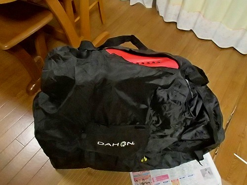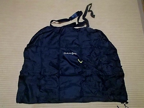 で、なんで輪行メンテをしようというのか?ですが、以前、K林さんに紹介頂いたスリップバックをオークションで格安の千円ちょっとで入手したので、どうしてもDAHONを収めて見たかったんです。今日、単独行動できていれば、BさんとエンツオRさん達と一緒に館山にDAHONで輪行していたんですけどね〜。