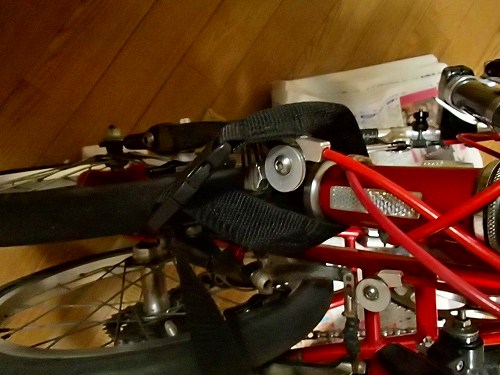 雨の日には、やり残していたメンテナンスくらいやっておきましょう!という事で、DAHON OEMのブレーキシューとシフトアウターを交換しました。シフトアウターはこの記事で割れてしまった事を報告してましたが、あさひさんに注文していたアウターがメッセンジャーバッグと一緒に届いたので、チャチャっと交換しました。まったく写真も説明もないですが、、輪行準備完成!