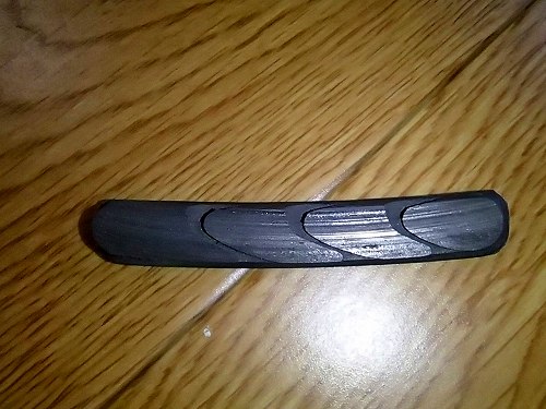古いシューは、こんな感じで溝がほとんどなくなっていますので、ちょうどいい交換時期だったようですね。自転車を趣味にする前に、傘をさして乗ってたころは、結構なスピードでシューが無くなった記憶がありますが、今は、雨の日には乗らないのでブレーキシューの減りが本当に遅いです。