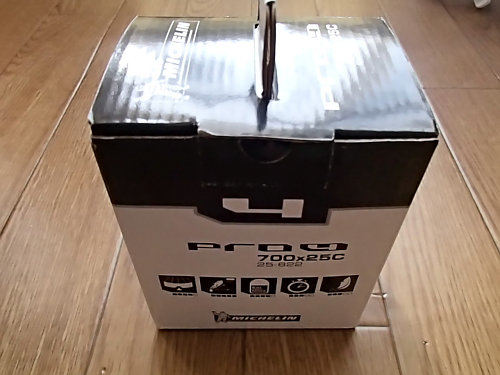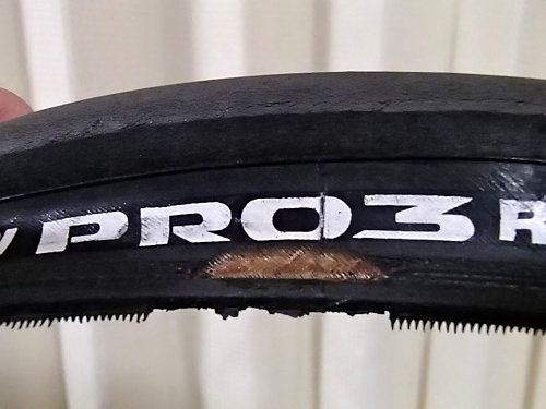 先週の土曜日に2010年9月にVIVALOが納車されてから履いているタイヤを交換しました。交換前は「ミシュラン PRO3 SERVICE COURSE 25C」でした。乗り心地のいいタイヤでしたので、次も同じタイヤにしたかったのですが、モデルチェンジしたので、「ミシュラン PRO4 SERVICE COURSE 25C」にしようと思って、近くのショップを探しましたが売ってません。
