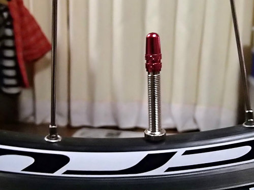 一番違うのはバルブの長さです。実は最初のチューブは45ミリ、交換前は40ミリ、交換後は60ミリです。交換前の40ミリのバルブはインフレーター(空気入れ)が上手く掴んでくれないので、空気が入れづらかったのです。今回はロングバルブにしましたので、快適に空気を入れることができます。