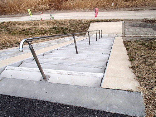 CRに戻って、木下の一般道に合流する場所まできたら、できたばかりのように新しい階段がありました。何なのでしょうか?階段の下には通路も何もないけど、わざわざ手すりまで付けた階段を作るということはこの下に何かを作って、一般の人が降りる事を想定しているという事ですよね?この右側には栄橋がありますが、栄橋をくぐって下流に行ける河川敷のCRができたりすると嬉しいな(可能性は少ないでしょうね〜)