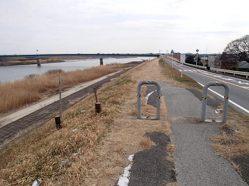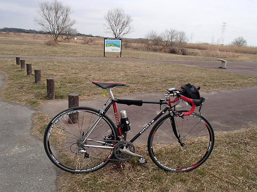 家を出てしばらくは「カン!」「チン!」という音が響きます、、新品のタイヤなので路面の小さな小石をいっぱい拾っているみたいですね。後でフレームを見るのが怖いくらいです。とりあえず、ゆっくりと利根川沿いのハケの道を走ってCRにアプローチしました。