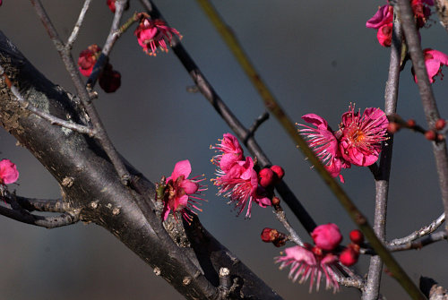 風車側から入ったので梅園は一番奥なのですが、入り口にも梅があったはずなのですが、花の咲いている木も人も少なめです。娘のエサ(今回は17アイス!)をゲットしてから梅園に出ると、やっぱり早かったようです。でも、数本だけ綺麗に咲いていましたので、これから二週間くらいがいい時期なのでしょうね。