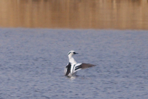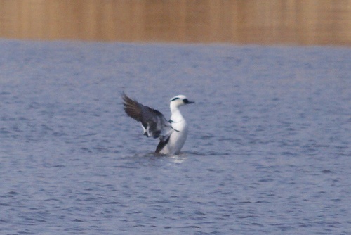 ミコアイサって、白が多いイメージなのですが、翼を広げると黒のほうが多いんですね。これではパンダとは呼べませんが、普段は静かに漂っているので、やっぱりパンダのイメージが強いですね。