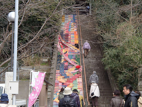 長禅寺の階段には、カラフルな布でアートになっているのかな?と近づくと、ちゃんとお雛さんになっていました。こんなイベントをやってたんですね。全然、知らなかったです。最後の木下ビック雛も見に行かないといけませんね〜