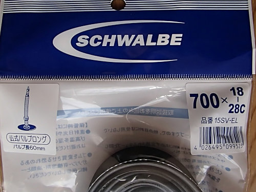 おかしいですね〜。少し前まではショップで売れ残っているのを何度も確認してたんですが、モデルチェンジでもするのでしょうか?ネットで検索したら見つかったので、即効で入手しました。今回はチューブも交換したかったので、ロングバルブを探したのですが、これもショップでは中々見つからず、、以外にもAEON BIKEに「シュワルベの60ミリバルブ」がありました。この時、横に500円程高くて「軽量65ミリグラム」と書かれたチューブがあったのですが、一本しかなかったので普通のものを購入しました(SB班の方は軽量を選択するのでしょうかぁ?)
