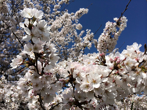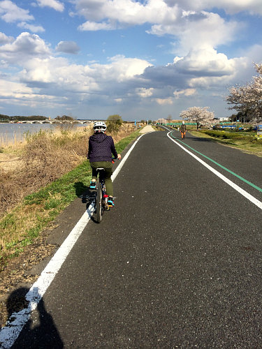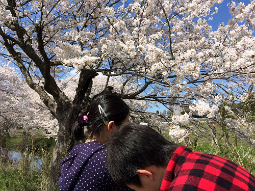 自転車を押しながら満開の桜を楽しみました。いいもんですね〜。時々、日差しがさして暖かくなって、桜が真っ白に光ります。立ち止まってボーっと眺めてしまいますね。でっかい声で喋りながら楽しんでいると、鉄ポタさん親子に遭遇しました。仲の良さそうなご兄弟(あ!お父さんもね)で、声をかけるとちゃんと返してくれて、おじさんは嬉しかったです。毎年の恒例の橋は渡れたかな?(うちの家族は自転車押して渡って、周りの人にびっくりされました〜)