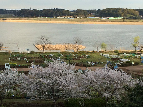 右:手賀沼周辺は枯れた葦の色ですが、手前は桜で春ですね