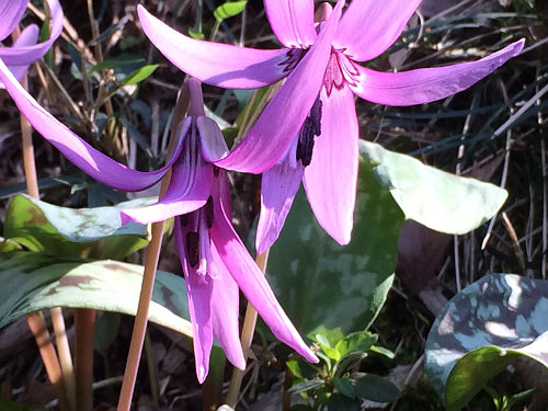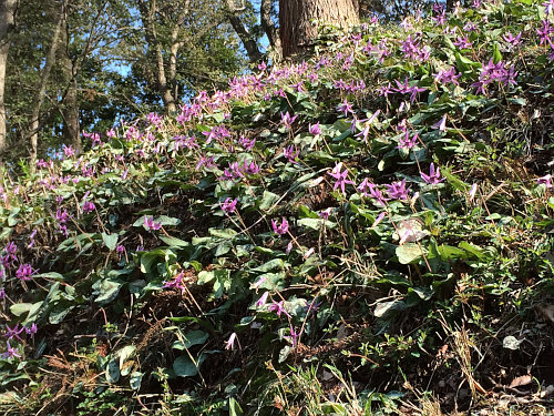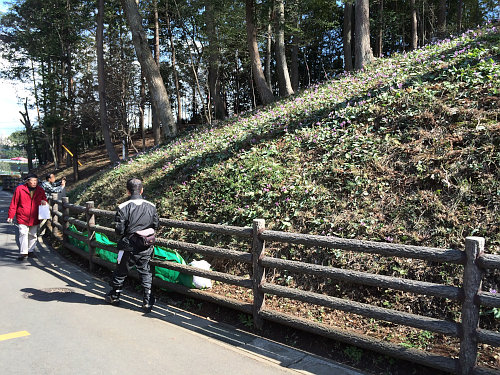 今井を後にして、白井市や旧沼南町の裏道を走って、カタクリの群生地に到着しました。以前、オフシーズンに来たときにはただの山(笑)だったのですが、やっぱり、花が咲いているといいですね。可憐な花がひっそりと咲いている感じですが、群生地だけあって紫がいっぱいで見応えがあります。(といっても、近所の方が例年よりは少ないねと噂されていました)