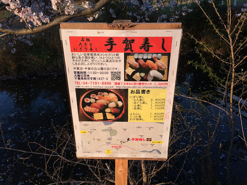 右:手賀寿司の看板が、、近所の方の話しによるとランチのお寿司はかなり大きいそうです