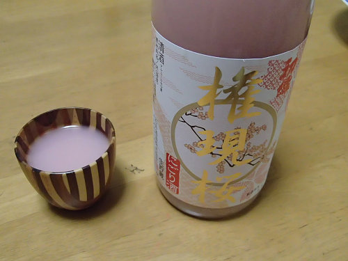 今晩の食後には権現堂で購入した。ピンクのにごり酒(権現桜)で気持ちよーくなりました、結構すっきりしたお味です。やっぱり、権現堂はいままでで一番豪華な菜の花と桜でした。でも、今井の桜のほうが落ち着きますね。