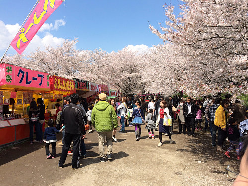 右:さくらまつりだったので、出店がいっぱい!久しぶりに焼きそばやたこ焼きやフランクフルトを食べて大満足です(たこ焼きは、、失敗しましたが、、)。