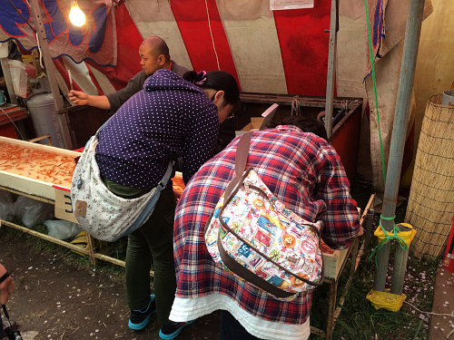 左:金魚すくいがあったので嫁さんと娘は本気モード