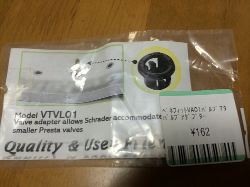 チューブはNo.2と3で迷いましたが、大きい方にしました。バルブアダプターは、この間の飲み会でEIJIさんが話していたのを思い出して購入しました。アルミとプラスティックの2タイプありましたが、アルミの方が小さすぎるように思ったので、プラスティックの方を購入しました。