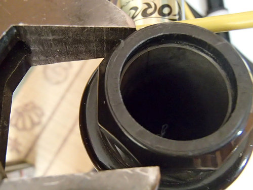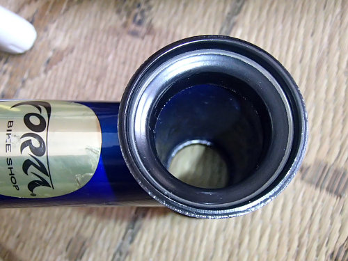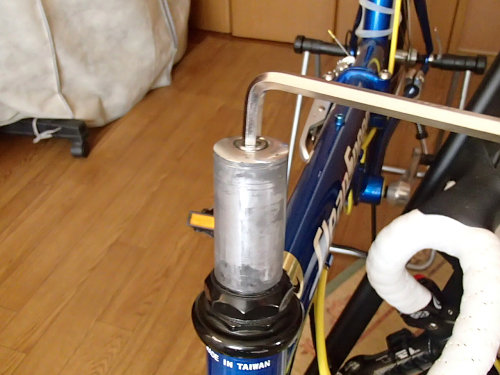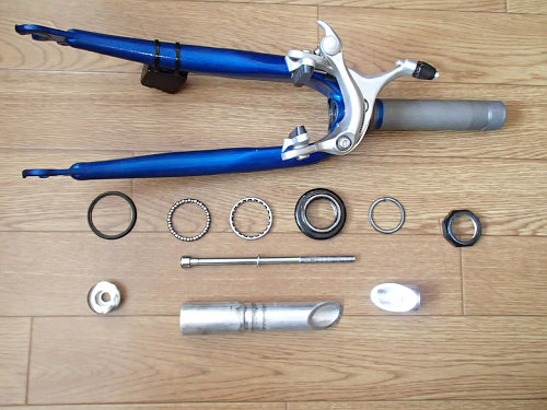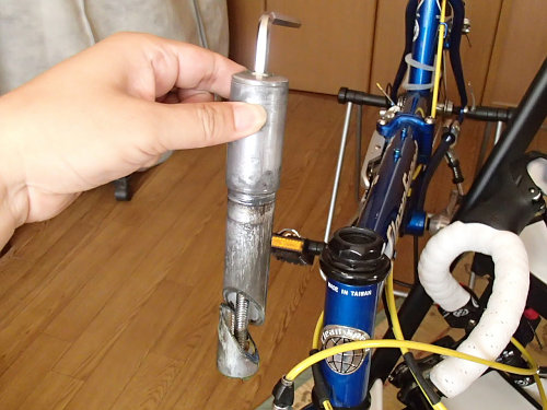DAHONでは何度もグリスアップしているので、手順は簡単です。ハンドル外して、スレッドコンバーター(みたいなもの)を外して、ナットをモンキレンチで外して、、、、ん?え?どういう事???
