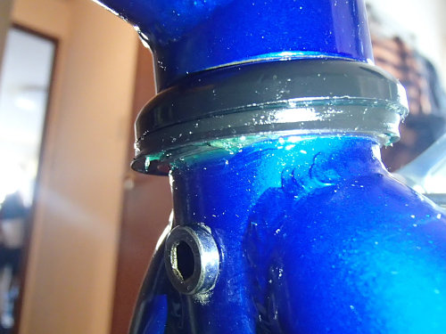 クリスピのヘッドはスレッドにパイプがついていて、ハンドルはアヘッドになっています。DAHONもなんちゃってアヘッドにしているので構造は同じですが、クリスピのヘッドを締めているナットが黒に塗装されたもので、ここを回すと塗装が削れて汚くなる気がしていたので、触りたくなかったんですよね。