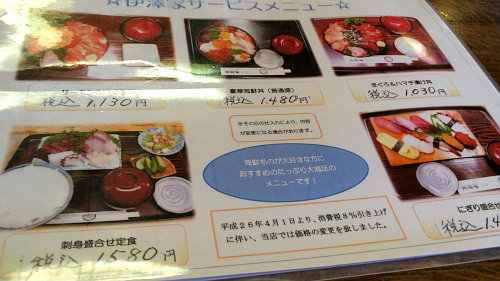 海鮮丼も気になりますが普通の定食もやっているようなので、そっちでもいいかな?厨房はすべて奥さんが仕切っているようで、旦那さんは配膳係をされてました。いい連携プレー(おーい、覚えとけよーまぐろ丼!って旦那さんが叫ぶー)でしたよ。