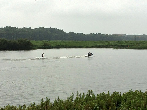 夏休み最後の日は雨予報だと思っていたら、午後からはお天気回復!という事で、子供の宿題を午前中に片付けてちょっとポタにGOです。行き先は、、適当に岡堰あたりまで、、夕立ありそうだしね。いつも岡堰からの帰宅ルートを逆走して、岡堰に速攻で到着します。のぼり坂が0なので、早い早い(笑)。