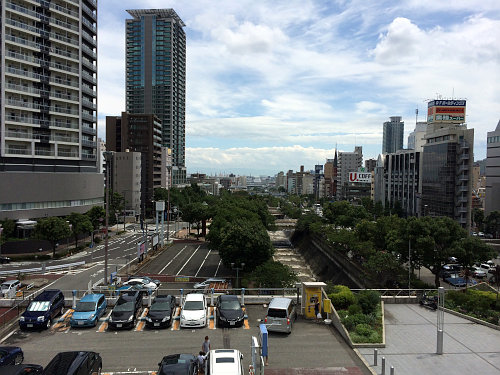 いつも新神戸駅に降りるとムワッと暑いのですが、今年は涼しかったですね。なんだかこの夏休みは涼しいようです。この画像では海が見えていないので、神戸感がないですが、新神戸駅の下を流れる生田川は六甲のおいしい水が増水していてジャバジャバいってました。