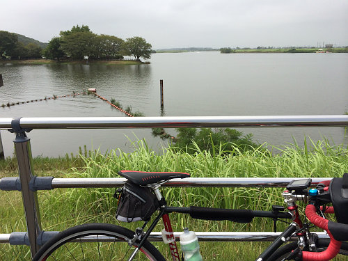今日の集合場所は水の館です。今日は手賀沼トライアスロンだったので対岸は通行止めです。