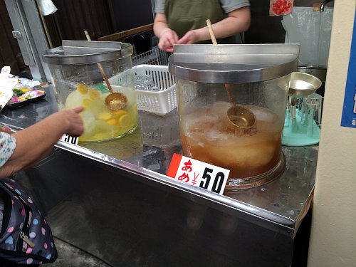 右:このエタイのしれない液体(ひやしあめ)が美味しいんですよねーー。なんで最近見ないのでしょう??